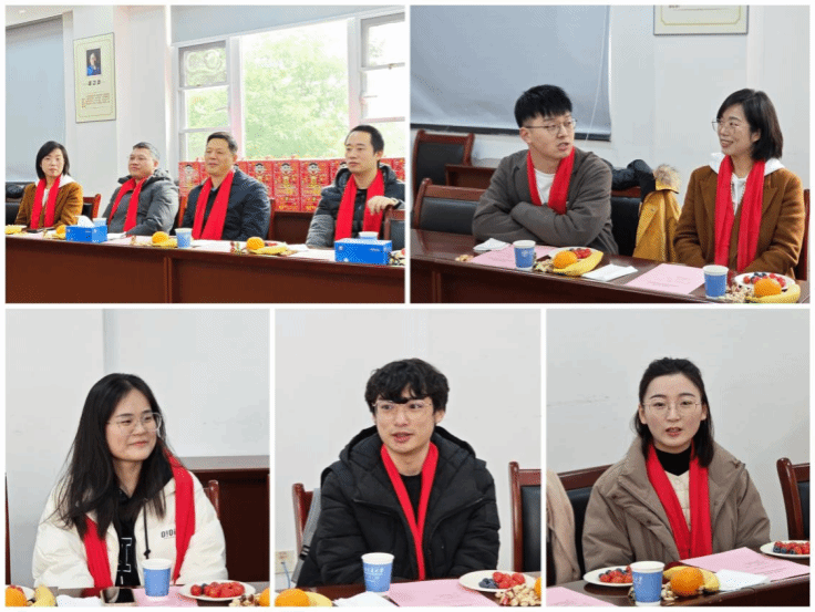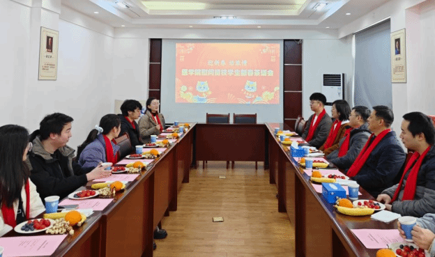 党委书记李锦红、院长周绍兵、副书记于楠、团委书记胡豪、辅导员张佳豪与留校学生代表欢聚一堂,共叙过往经历,畅谈新年气象。此次会议由胡豪主持。