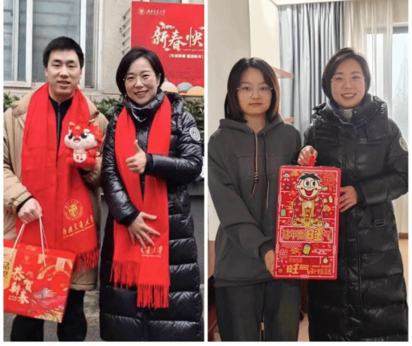 殷殷祝福语,浓浓关爱情。“老家是哪里的?”“记得常和家人们联系!”“假期留校有什么安排?”在学生宿舍走访慰问过程中,学院领导与教师同学亲切交谈,了解师生过年的计划与生活学习情况、科研进展等,于书记叮嘱同学们春节假期要劳逸结合、规律作息、加强锻炼、注意安全,遇到困难即时联系辅导员老师。