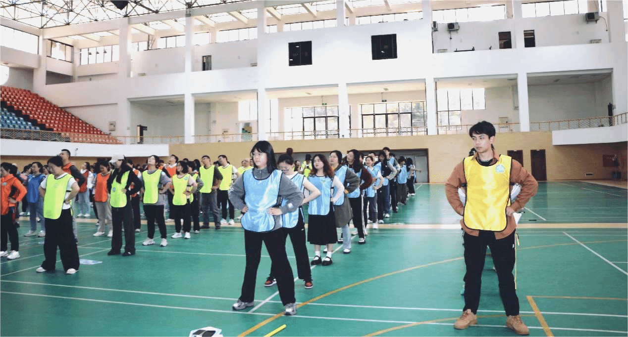 游戏环节即将拉开帷幕,师生们齐聚一堂共同开展赛前热身。大家跳跳舞、伸伸腰,为接下来的比赛做好准备。一起加油,让比赛更加精彩!