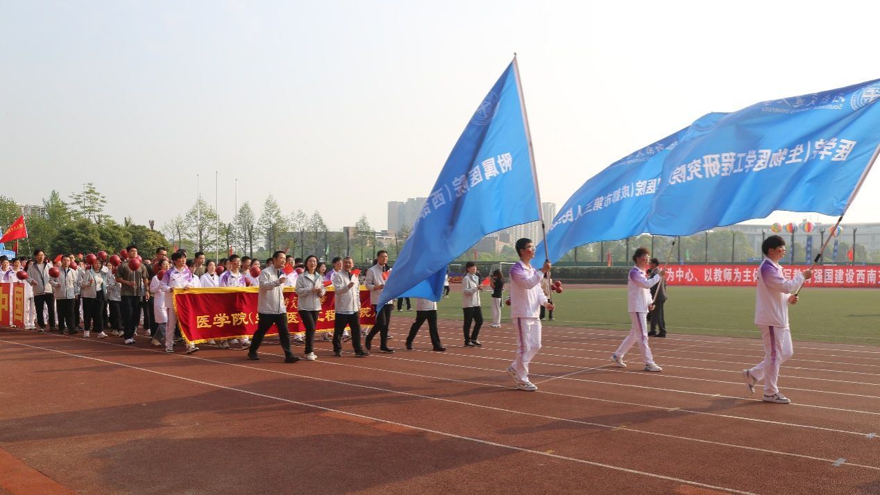 和附属医院成都市第三人民医院、西部战区总医院师生组成方阵参加了此次运动会。