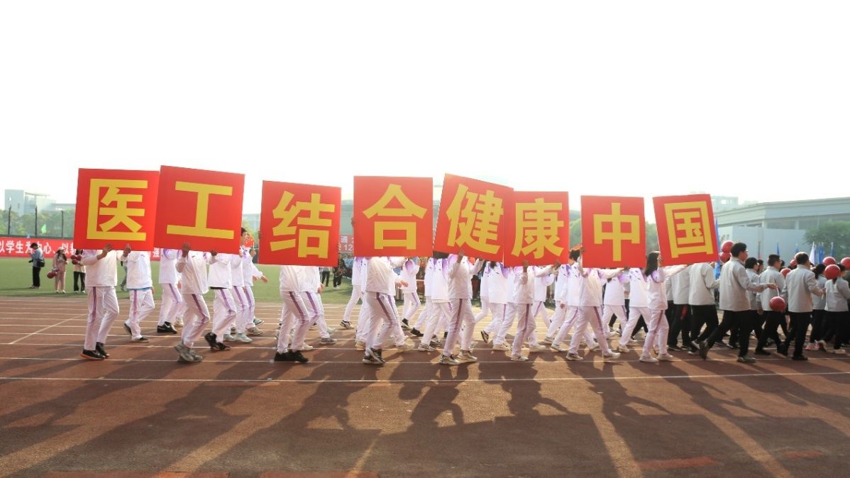 和附属医院方针,高举三面旗帜、迈着坚定整齐的步伐步入赛场,“临床生医,开拓创新,医工结合,健康中国”,铿锵的口号在回响在整个赛场。方阵走在红色的跑道上,更是走在建设具有医工结合特色制服诱惑