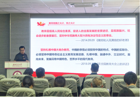 大会第一阶段,由李锦红书记通报习近平新时代中国特色社会主义思想主题教育的有关情况。李锦红书记从目标要求、重点举措、组织领导和责任落实等方面,对此次主题教育作了全面部署。在主题教育的调查研究方面,学院领导班子围绕贯彻落实党中央重大决策部署和习近平总书记关于教育的重要指示批示精神,对照《关于在全党大兴调查研究的工作方案》明确的12个方面主要调研内容,围绕贯彻落实学校第十五次党代会各项任务要求,认真组织开展涉及职责范围内的问题大梳理、难题大排查,领导班子成员每人提出并牵头1至2个调研课题。大会上,围绕5个调研课题,向全院教职工作了开放式问卷的意见征集。