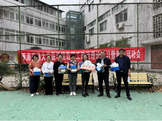在九里校区晚晴苑排球场举办教职工政治理论学习暨趣味运动会。活动以学校第十五次党代会精神为学习内容,旨在达到“动中有学,学有所获”的目的。院长周绍兵、党委书记李锦红主动参与其中,与教职工学在一起、运动在一起,此次活动由党委副书记于楠主持。