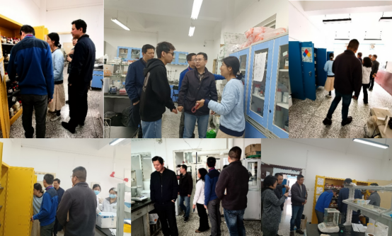 实验室危险化学品安全工作,全面排查学院实验室危险化学品安全工作的薄弱环节,确保师生安全及实验室平安稳定,2023年3月30日上午,学院党委书记李锦红、院长助理郑晓彤带队,与实验室智伟、周杰、游天雪、杨利文、熊开琴老师一道,对九里校区三号楼生物医学工程系实验室责任老师的实验室和危险化学品库房、0号楼1层、生物材料实验楼进行了危险化学品安全专项检查。