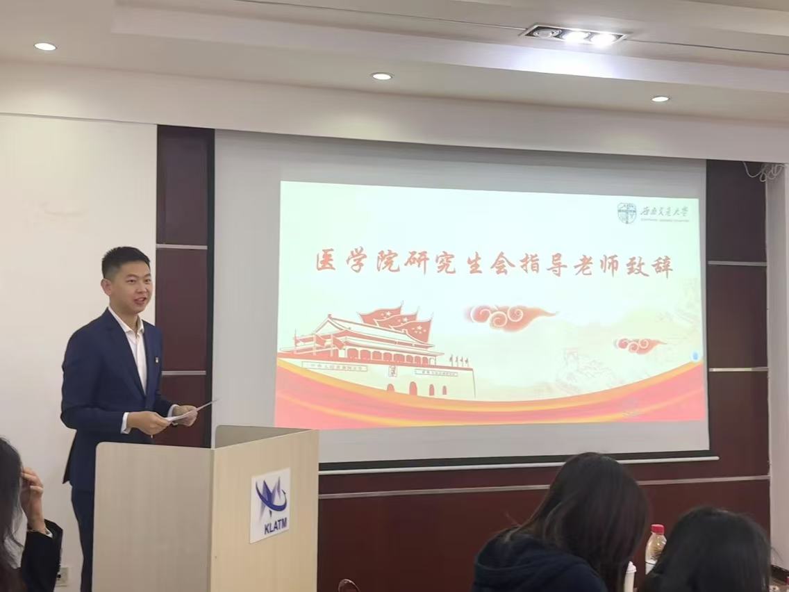 研究生会指导老师韩鹏飞首先对大会的召开表示祝贺,并对长期以来支持关心研究生工作的领导、老师和代表表示衷心的感谢。他强调研究生会在引领学生思想、服务青年成长和维护学生权益方面至关重要。与此同时,韩鹏飞老师向与会代表提出了三点希望:一是继续加强青年学生的思想引领,深入学习新思想、新理念。二是以改革创新精神提升服务水平,切实关注学生需求。三是加强团学干部队伍建设,培养高素质的学生组织。最后,他鼓励代表们以大会为契机,携手推动制服诱惑