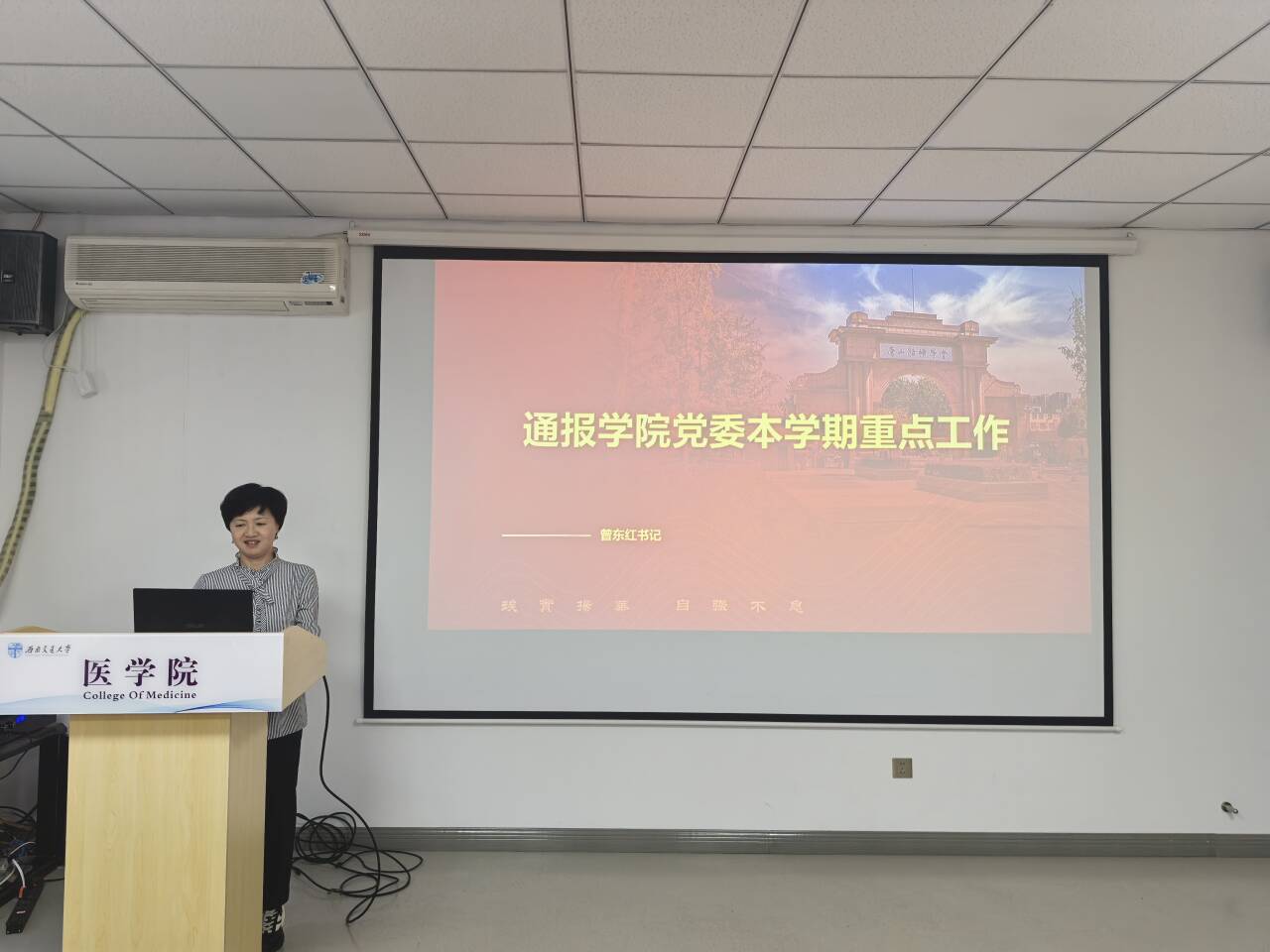 大会伊始,周绍兵院长向全体人员介绍了曾东红书记丰富的工作经历,曾书记随后进行了自我介绍,并作出工作表态。大家对新书记的到来表示热烈欢迎,对学院未来发展充满期待。