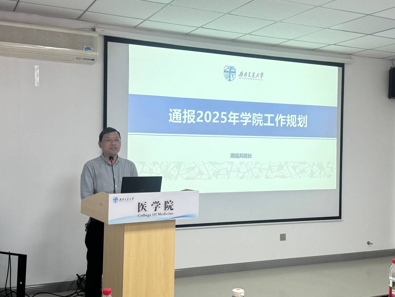 党委副书记于楠主持大会第二阶段,学院领导班子从党建引领、战略规划、人才培养、国际合作等多维度展开工作部署:党委书记曾东红锚定本学期党建重点任务,为党建工作指明方向;院长周绍兵系统解读2025年发展规划与目标任务书,明确学院发展目标;副院长冷永祥聚焦人才培养与国际化建设,各分管负责人同步通报绩效分配、实验室安全、本科教学等重点工作,为全年工作锚定坐标。