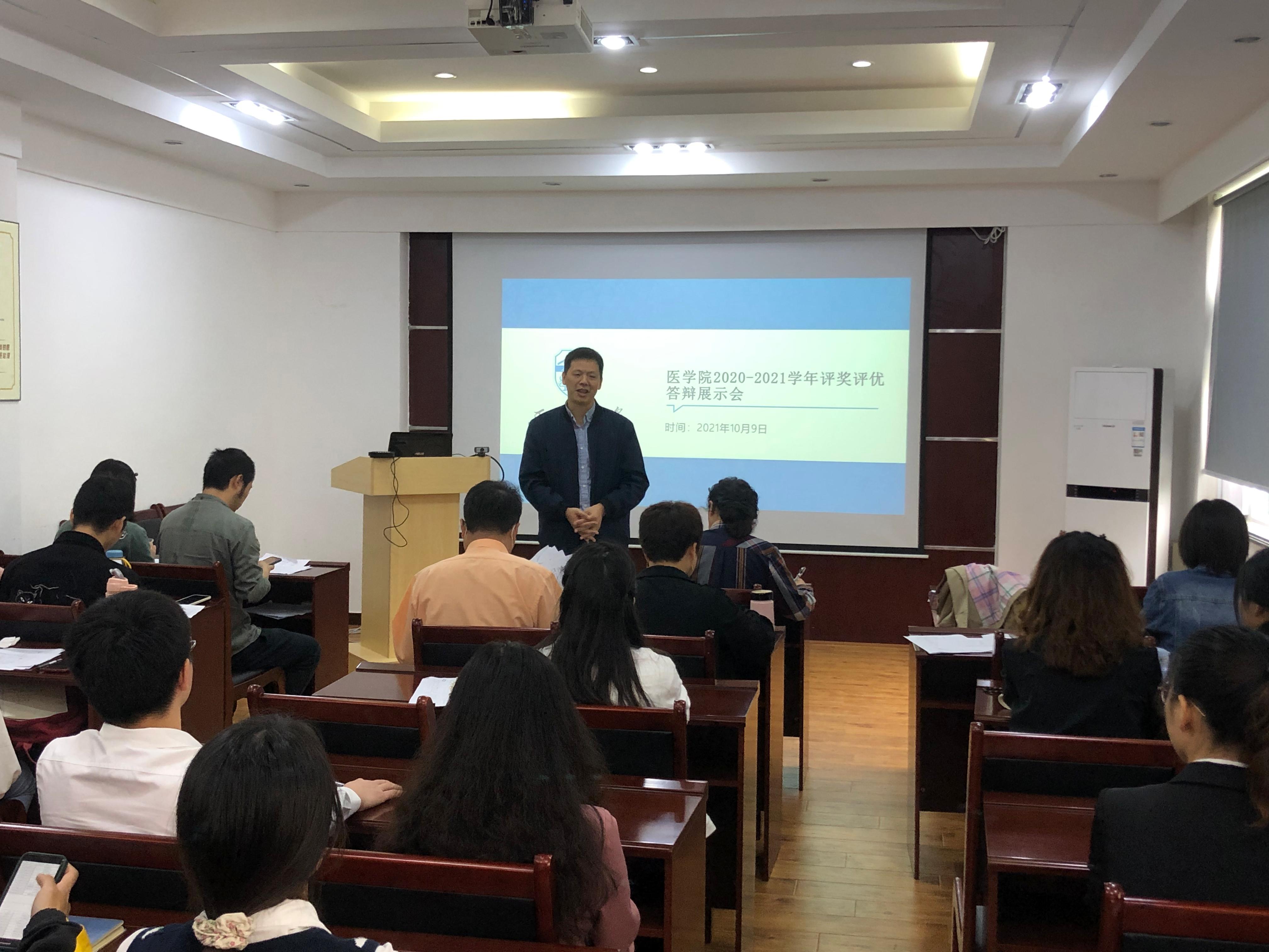 以线上线下相结合的形式召开了2021-2022学年评奖评优答辩展示会,线上会议通过腾讯会议平台召开,线下会议在制服诱惑