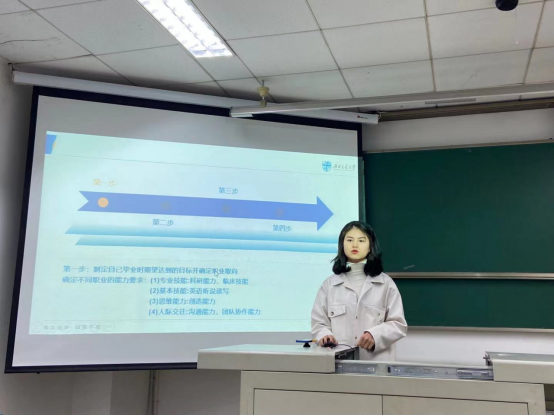 分享会中石若琳同学首先为大家介绍了什么是职业规划以及规划的意义,通过具体的事例让同学们意识到了合理规划的重要性。