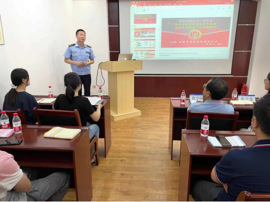 副院长翁杰担任总指挥,资实处安全科赵春花老师受邀为全体师生做实验室安全培训;成都利民消防宣传中心李斯杰教官做消防安全培训并全程指导应急演练活动。