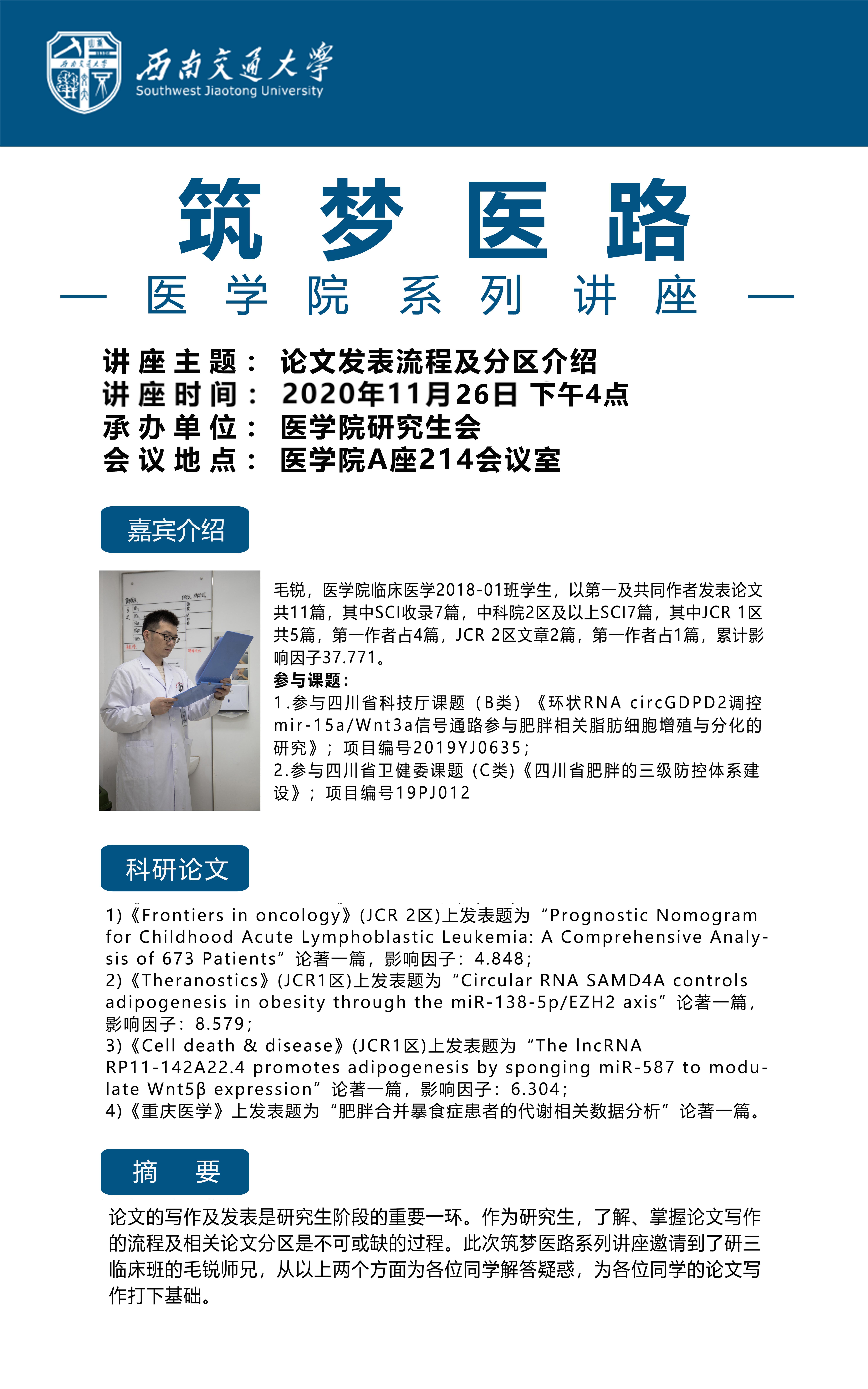 2020年11月26日下午4点,为解答学术型研究生关注的科研论文发表问题,制服诱惑