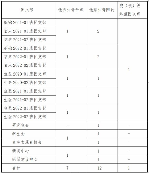 注:1.以上数据依据学校各二级团组织可推荐名额分配。