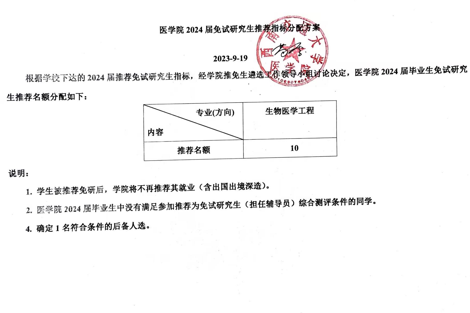 根据制服诱惑 《制服诱惑 推荐优秀应届本科毕业生免试攻读研究生实施办法》《关于公布2024年学院推免名额的通知》,经学院推免生工作小组研究决定,现将制服诱惑 2024届免试研究生推荐指标分配方案公布如下: