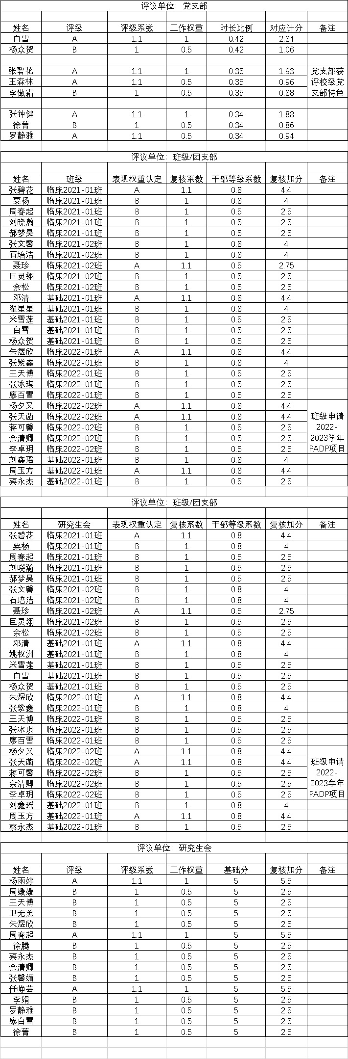 现将学院2022-2023学年研究生学生干部计分进行如下公示。