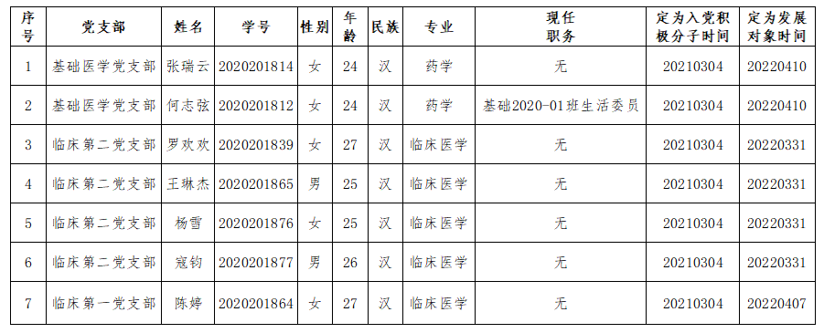 经群众意见征集、党支部委员会讨论、制服诱惑 党委备案,现将制服诱惑 党委2022年第一批发展对象名单公示如下: