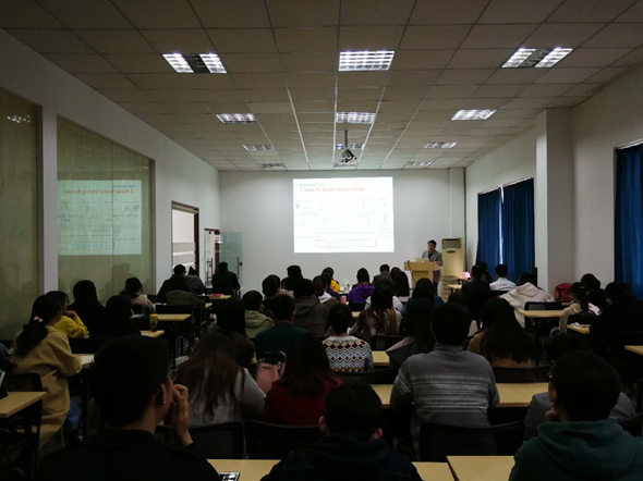 师生做了《再生医学》的专题讲座。郭泰林副教授以动物器官的再生能力为例切入主题,通过分子机制、基因调控和信号通路等方面系统阐述了再生医学的生物学原理;通过对目前最前沿研究成果的整理,为在座的师生进一步拓宽了研究视野。在座师生积极提问,广泛交流,现场氛围活跃。