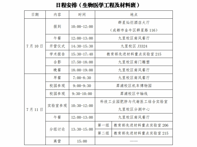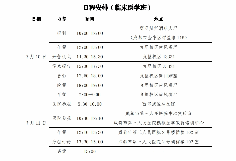 4.7月11日早退房,请营员携带好行李及个人物品乘坐大巴车,当天活动结束后,就地离营。