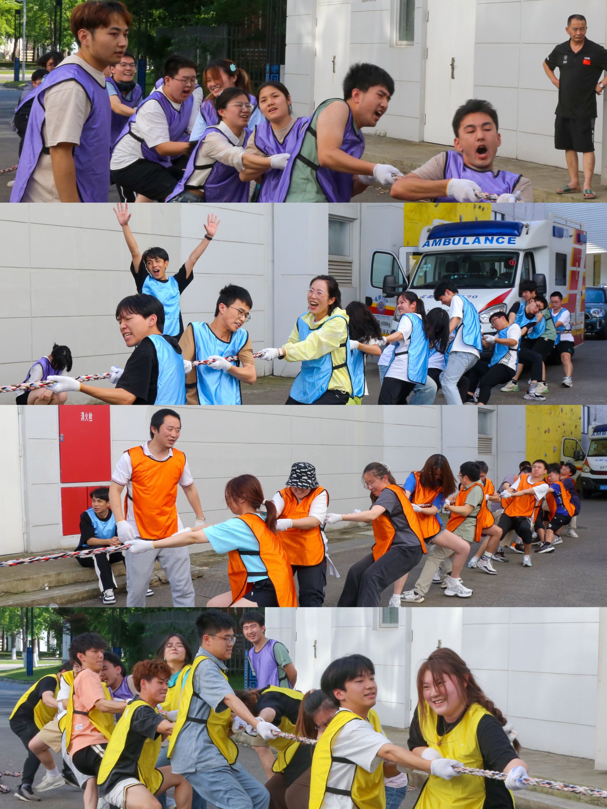 最后进行的是激动人心的“集体拔河”比赛。四个队伍分别站在绳子的两端,通过拔河的方式决出胜负。比赛现场,队员们齐心协力、奋力拼搏,观众们也加油助威、热血沸腾。