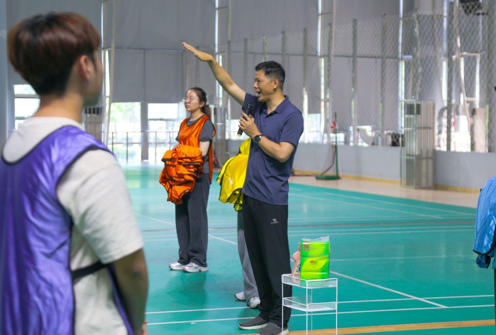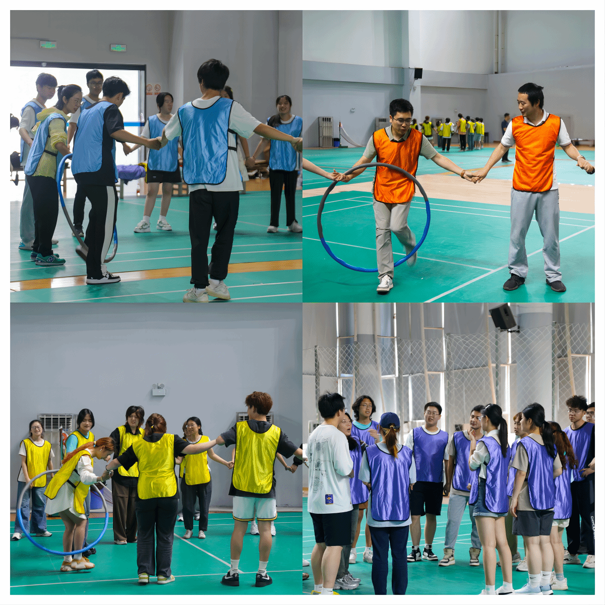 首先进行的是“一圈到底”游戏,参赛队伍需要手拉手围成一个大圈,然后共同旋转,尽可能快地转动圈子并传递一个小球,确保小球在队伍中不落地。这个游戏考验了队员们的默契和协作能力,也让他们在游戏中增进了友谊。