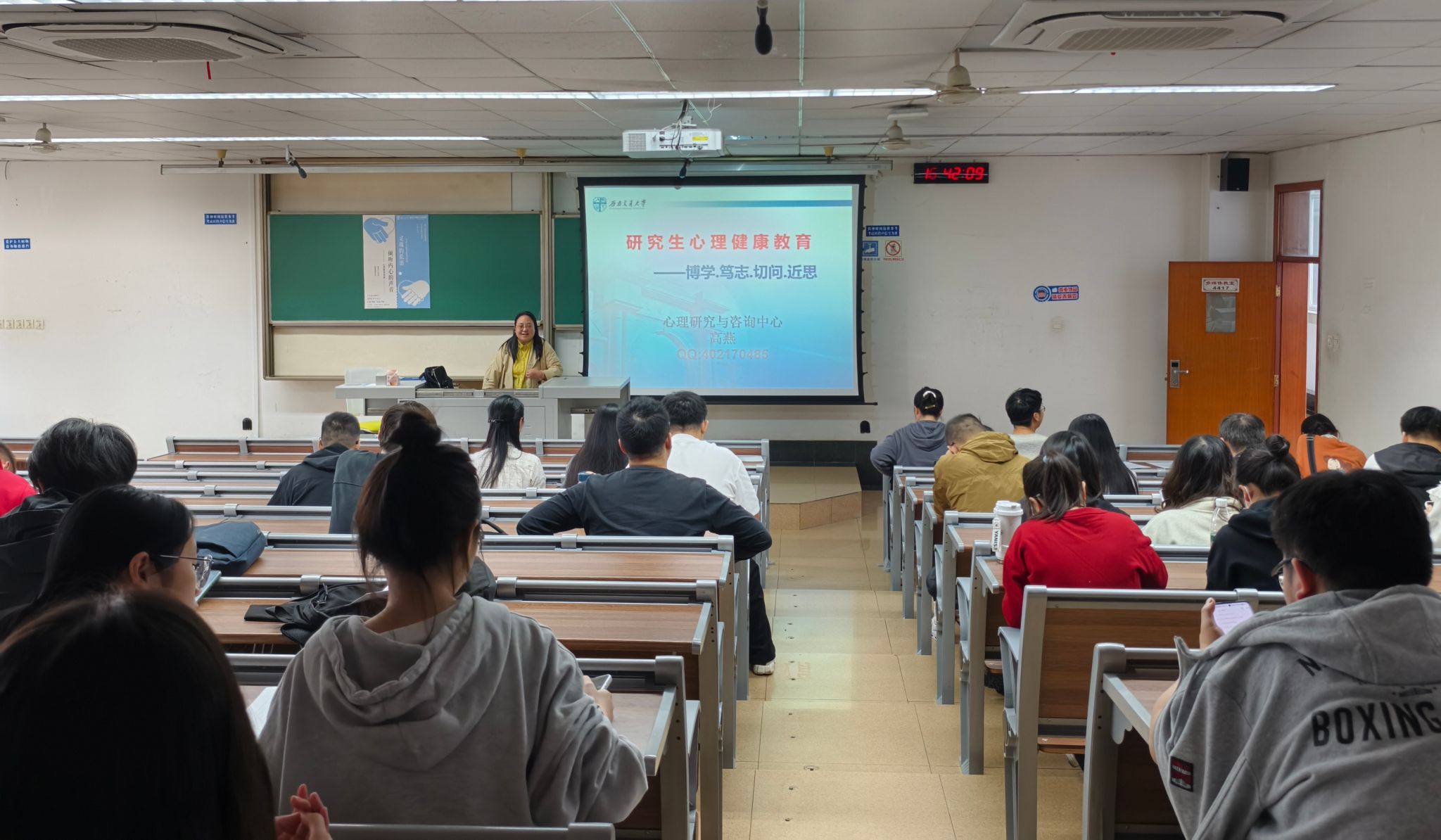 心理研究与咨询中心的高燕老师为2024级全体研究生开展了一场以“倾听内心的声音”为主题的心理健康讲座,帮助同学们在繁忙的学业中,保持积极健康的良好心态。