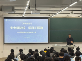 召开了本学期首次本科生全员大会,作为“平安医学季”活动的一部分,旨在提升学生的安全意识和校园安全教育。