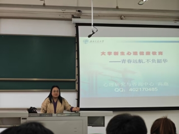 邀请到心理研究与咨询中心的高燕老师为本科生新生进行题为“青春远航,不负韶华”的心理健康专题讲座。高老师谈到,在当今快节奏的学习和生活环境中,大学生心理健康问题日益受到关注。本次讲座旨在在提高同学们对心理健康重要性的认识,帮助他们更好地应对学习和生活中的压力。希望同学们在本次讲座中掌握实用的心理调适技巧,为今后的学习和生活提供有力支持。