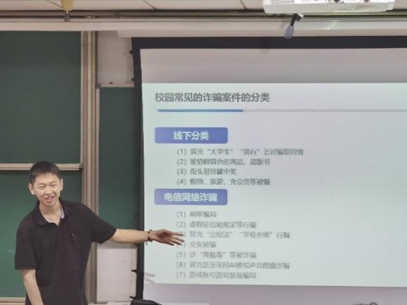 学院于9月29日举办了以“防范电信网络诈骗,铸盾和谐校园”为主题的防诈教育讲座,由24级辅导员韩鹏飞主持。韩鹏飞详细讲解了电信诈骗的种类以及常见诈骗手法。同时,呼吁大家要积极学习防骗知识,如若面对诈骗时要保持冷静,及时向警方报案。大家纷纷表示,会积极参与到防范电信诈骗的行动中,防诈于心、反诈于行,共同为打击电信诈骗犯罪做出应有的贡献。
