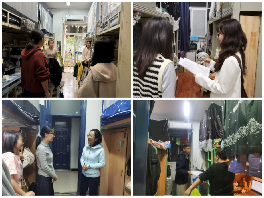 于10月-11月开展了宿舍卫生联合检查,检查组特别留意了学生宿舍中的违禁物品存放、违规电器使用(如电吹风功率过大)、私拉电线、宠物饲养以及内务卫生等安全隐患。此次活动旨在及时发现并消除潜在的安全隐患,为学生营造一个安全稳定的学习生活环境,并增强学生的集体生活安全意识。