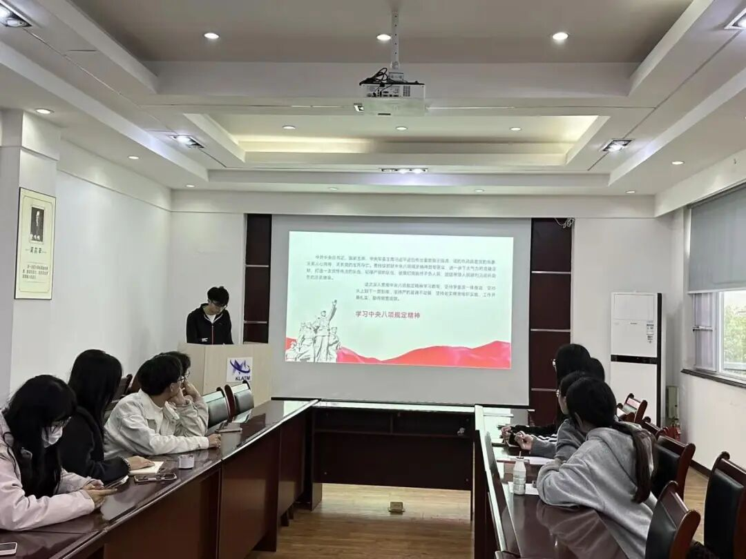 会议伊始,研会全体成员围绕“锲而不舍落实中央八项规定精神,推进作风建设常态化长效化”这一主题开展专题学习。学习过程中,大家充分结合校园生活共同回顾八项规定出台以来的会风学风变化,从中深刻认识到优良作风是研会发挥桥梁纽带作用、服务同学的根本保障。