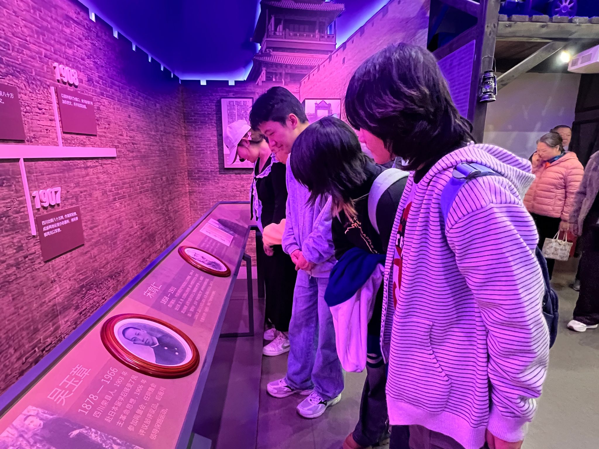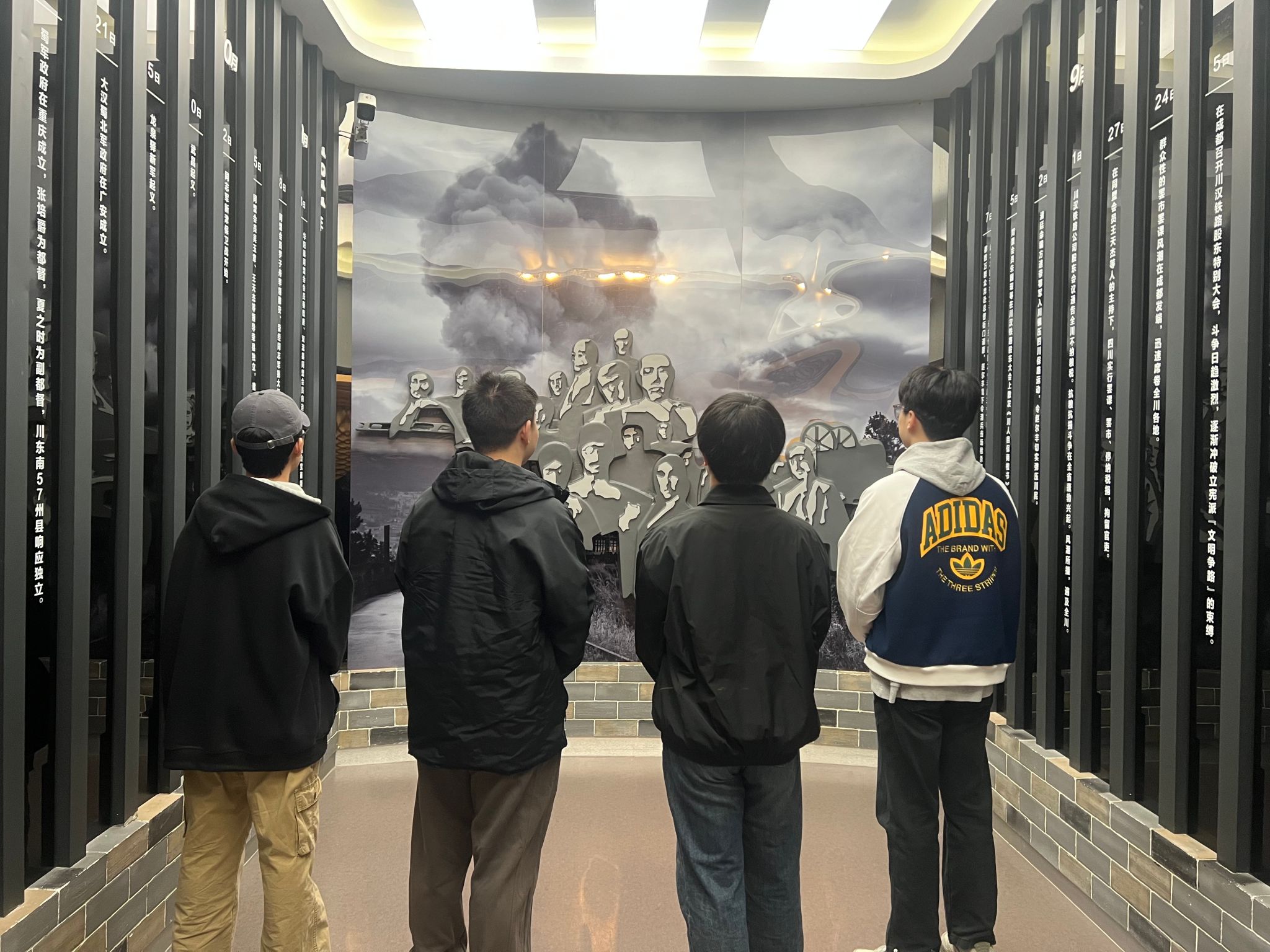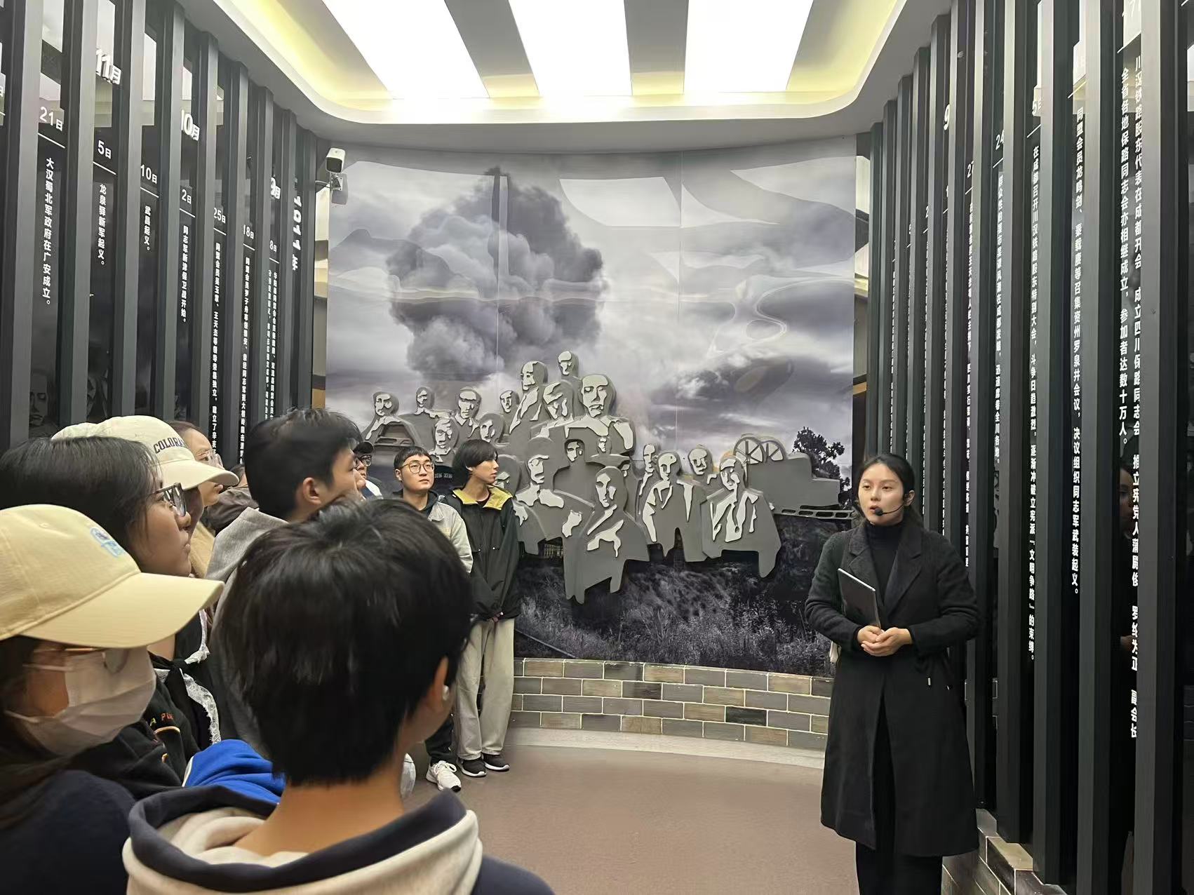 从“新潮涌动,风暴来临”展厅中清末四川的沉重史料,到“保路风潮,波澜壮阔”展厅里请愿旗帜与演讲照片所还原的抗争现场,成员们循着历史线索,切身感受了“天下兴亡,匹夫有责”的家国情怀如何从共识转化为行动。这一思考在“荣县独立与武昌起义”展厅达到高潮。在讨论保路运动与辛亥革命的联动时,历史的脉络与现实的使命自然交织:作为交大医工学子,先辈为捍卫铁路主权而抗争,我辈则为攻克医疗技术壁垒而奋斗。时代变迁,战场转换,但那份关乎国家命脉的担当,从未改变。