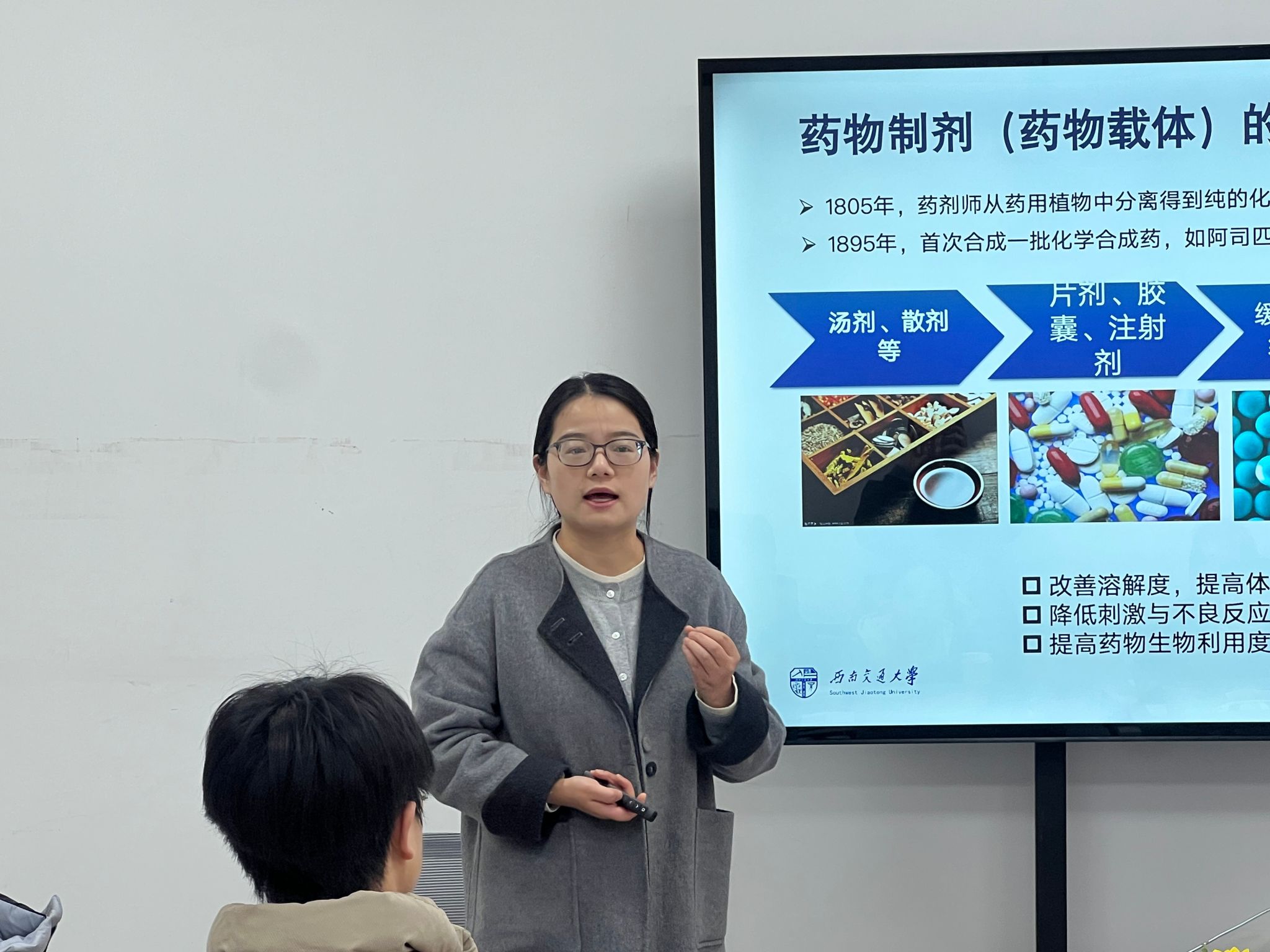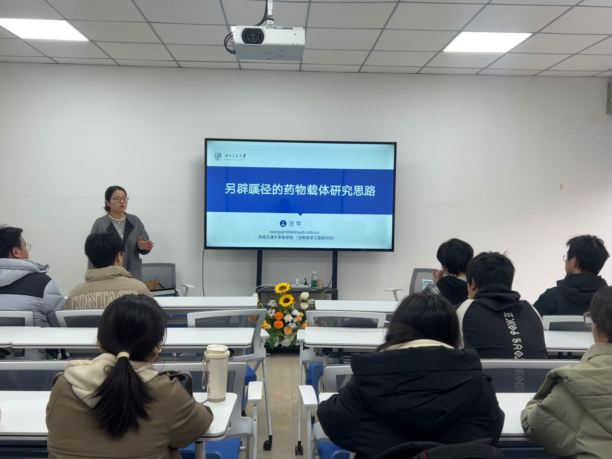 副教授、“青年讲师团”成员汪琴老师,以"另辟蹊径的药物载体研究思路"为主题,为学生们带来了一场兼具学术深度与产业视野的精彩讲座。