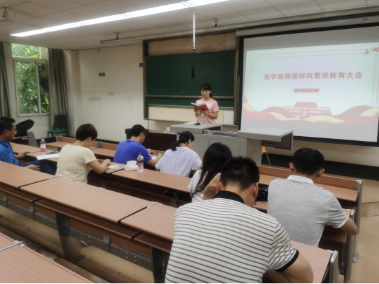 全体教师在九里校区逸夫馆J4209教室开展了师德师风警示教育大会。会议由芦莹华老师主持。
