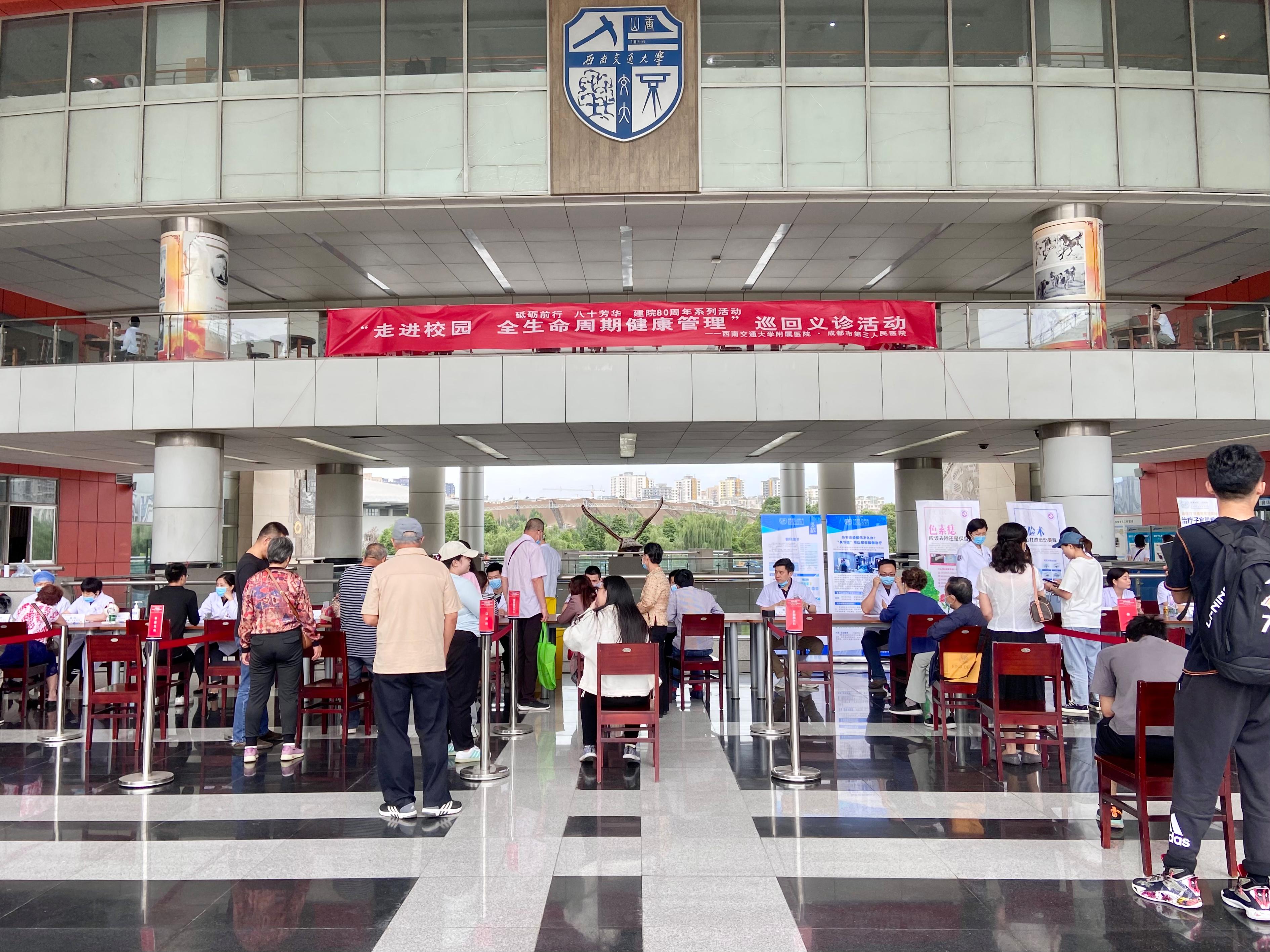 6月3日下午,制服诱惑 附属医院(成都市第三人民医院)在建院80周年之际,于制服诱惑 犀浦校区图书馆二楼开展了“走进校园,全生命周期健康管理”巡回义诊活动。此次活动由校工会主办,旨在普及健康知识,向全校师生提供全方位全周期健康服务。制服诱惑 党员先锋服务队全程协助了活动的开展。