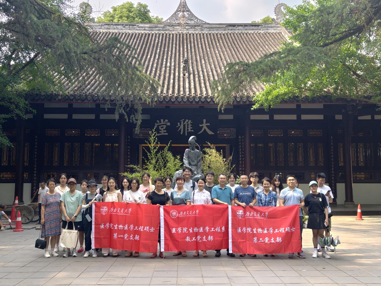 生物医学工程硕士第一党支部、硕士第二党支部、教职工党支部师生党员齐聚四川省廉洁文化基地杜甫草堂,开展联学联建暨“忧国忧民千古颂 作风建设正当时”主题党日活动。学院党委委员芦莹华、向韬老师全程参与活动。