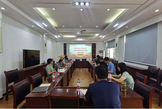 于A204会议室召开学习贯彻习近平新时代中国特色社会主义思想主题教育调研情况交流会。学院领导班子、院长助理、系主任、团总支书记、专职组织员等参会,学校主题教育第八督导组任黎立老师出席会议进行监督指导。交流会由学院党委书记李锦红主持。