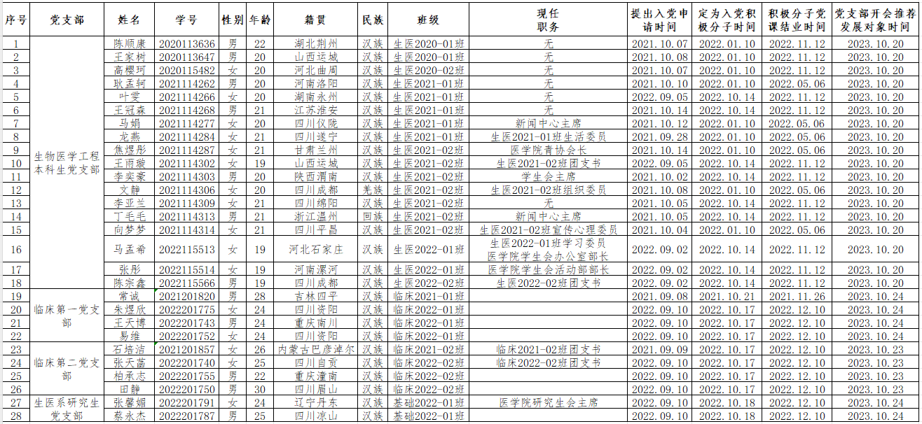 经班团组织推优、群众意见征集、党支部委员会/党员大会讨论,现将制服诱惑 党委2023年第二批发展对象预备人选名单公示如下: