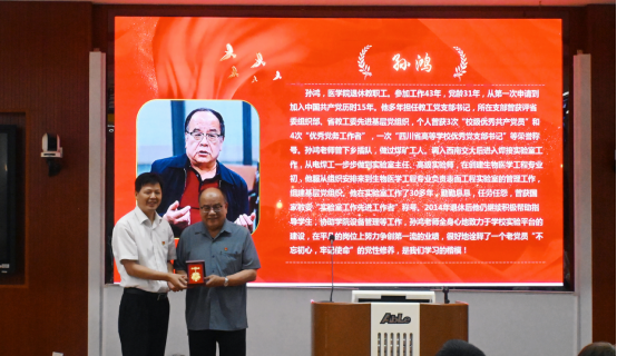 党委特为党龄30年以上的孙鸿、屈树新两位同志定制了“光荣在党三十年”纪念章,以表达对两位同志在学校、学院发展以及党和国家教育、科研事业中所作贡献的衷心感谢和崇高敬意。