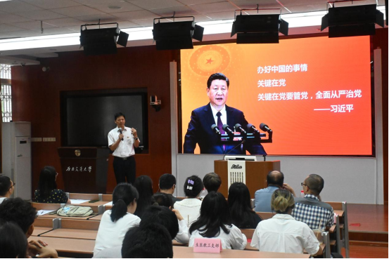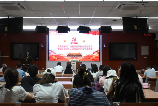于楠副书记结合《中国共产党普通高等学校基层组织工作条例》及《中国共产党章程》中的重要内容,从基层党支部及党员个人层面介绍了全面从严治党工作要求。