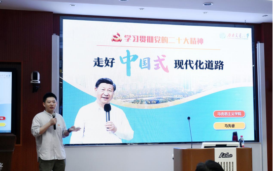 党委召开学习贯彻习近平新时代中国特色社会主义思想主题教育领导班子专题读书班(扩大)暨“学习贯彻党的二十大精神,走好中国式现代化道路”专题辅导报告会。会议由学院党委书记李锦红主持,学院领导班子及全体教职工、学生党员参会。马克思主义学院马先睿副教授为大家作《走好中国式现代化道路》专题辅导报告。