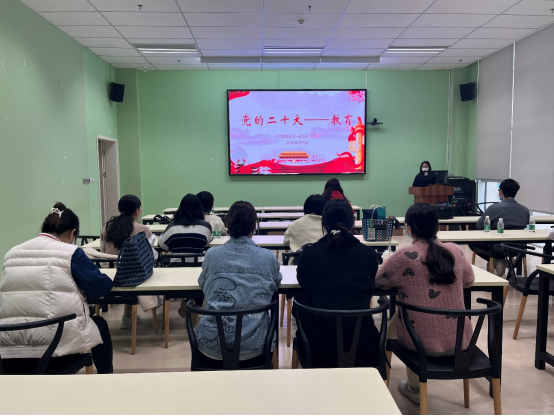首先,李傲霜同志指出党的二十大胜利召开,在党和国家事业发展进程中具有重要里程碑意义。随后带领全体参会人员从三个方面进行了学习:通过二十大解读教育事业、教育改革,以及结合时事的思考。