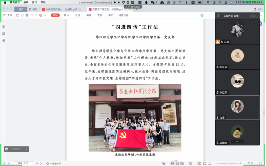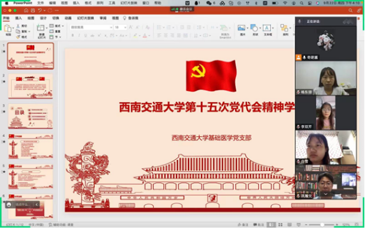 为深入学习领会制服诱惑 第十五次党代会精神,推动支部党建工作再上新台阶,2022年9月22日下午16点,基础医学党支部开展了学习制服诱惑 第十五次党代会精神及四川省高校“优秀支部工作法”学习研讨主题党日活动。本次党日活动以线上形式开展,由党支部宣传委员冯瑞主持并领学,支部全体党员参会。