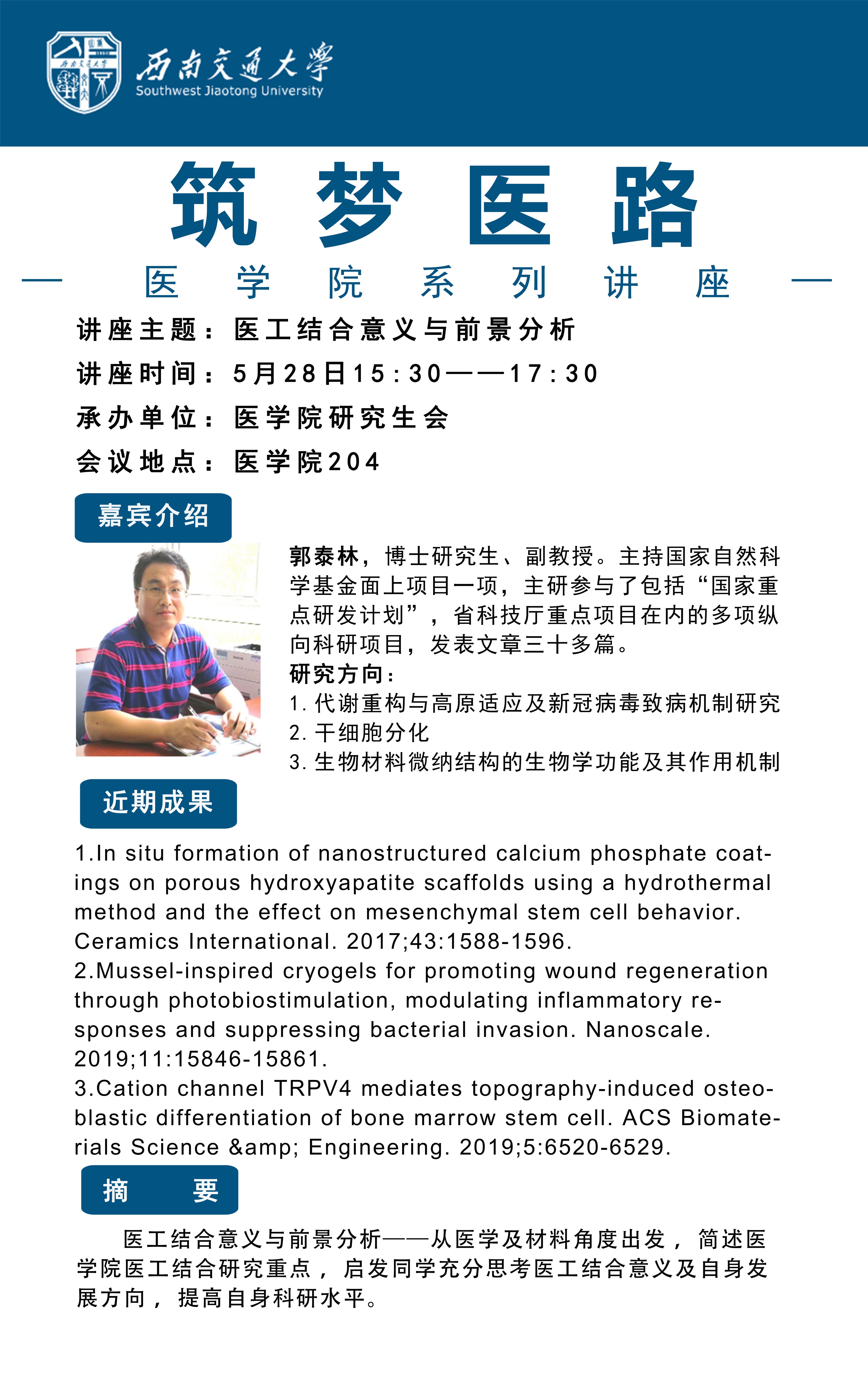 讲座摘要:医工结合意义与前景分析——从医学及材料角度出发 ,简述制服诱惑